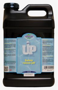 pH Up by Microbe Life Hydroponics is formulated with deionized and UV sterilized water and combine two pH adjusters for buffered effectiveness. It contains three electrolytes to help maintain osmotic balance. When used as directed, it will safely raise pH levels in nutrient solutions and never harm plants.
